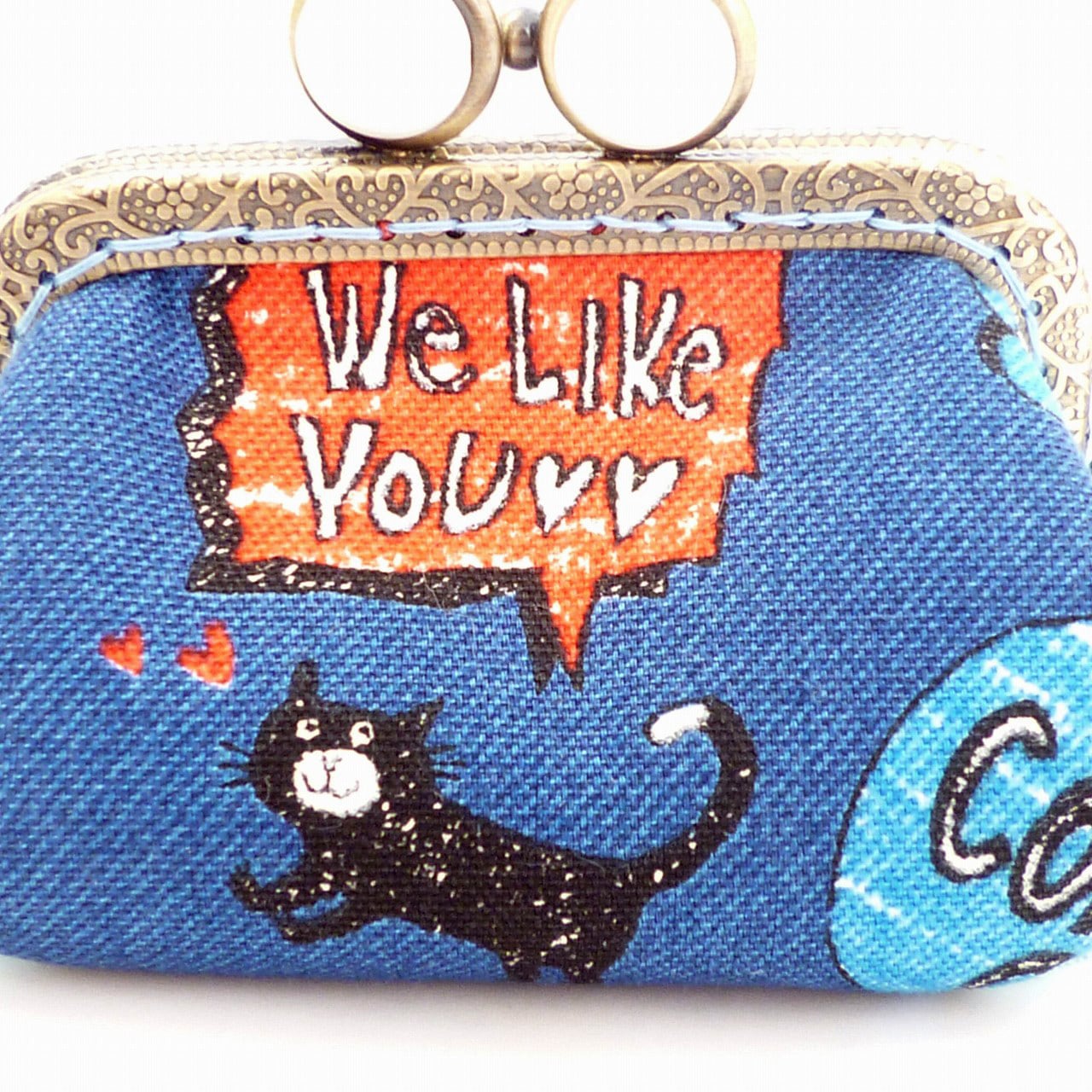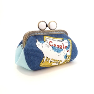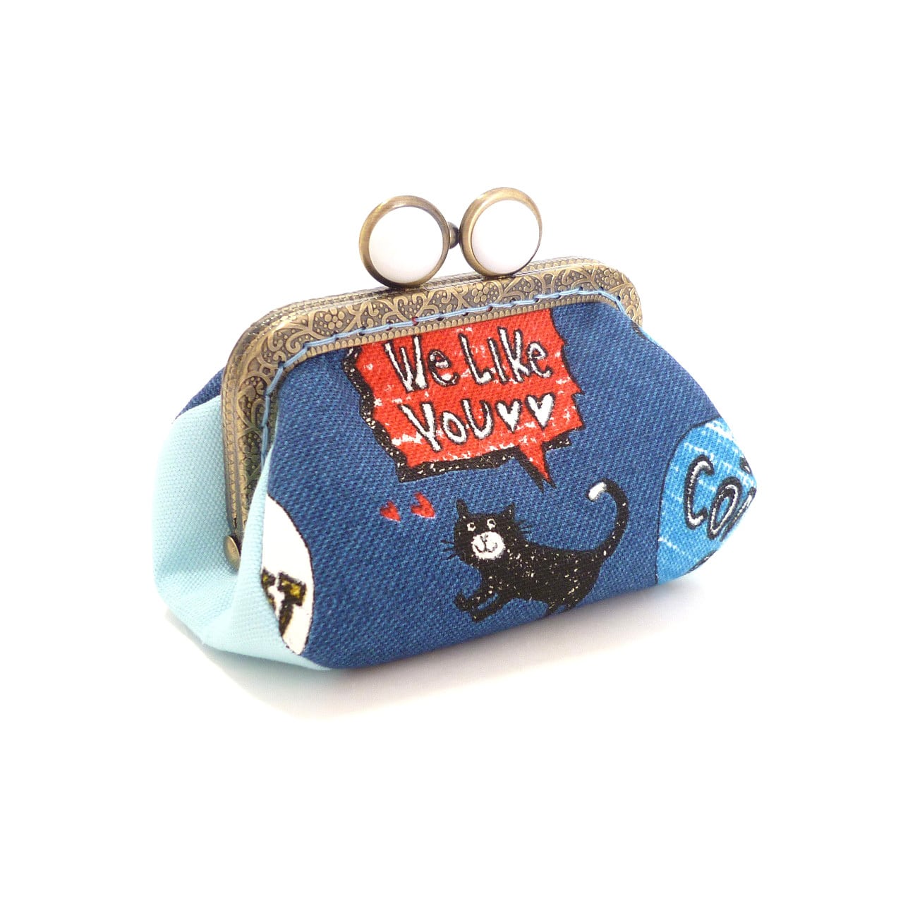 英語で話す猫たちのポップな柄のがま口小銭入れです。