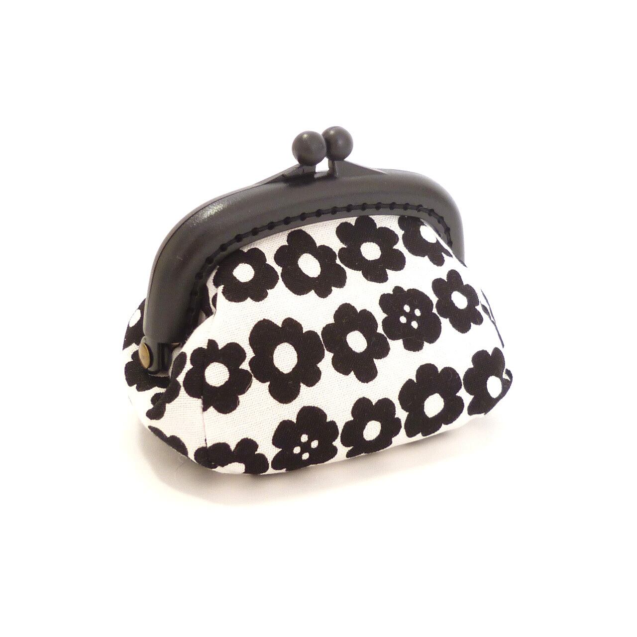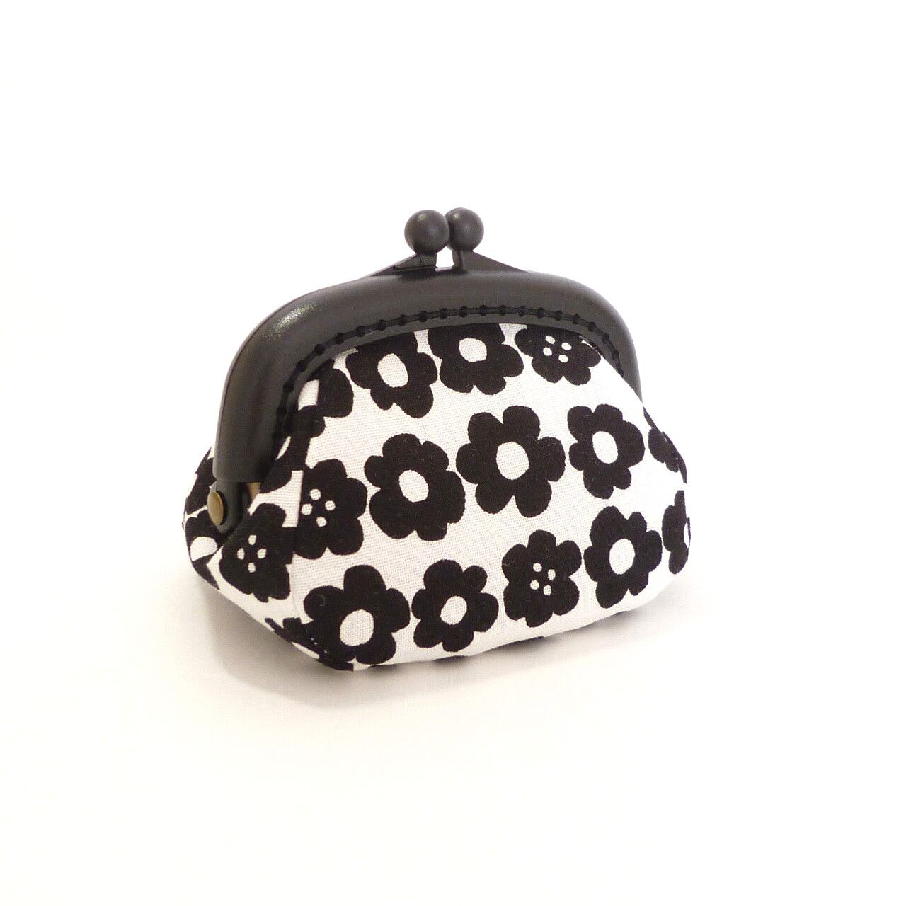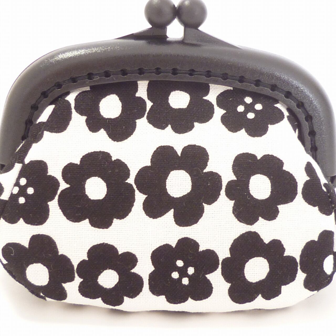 モノトーンの花柄が綺麗にならんだお洒落ながま口です。