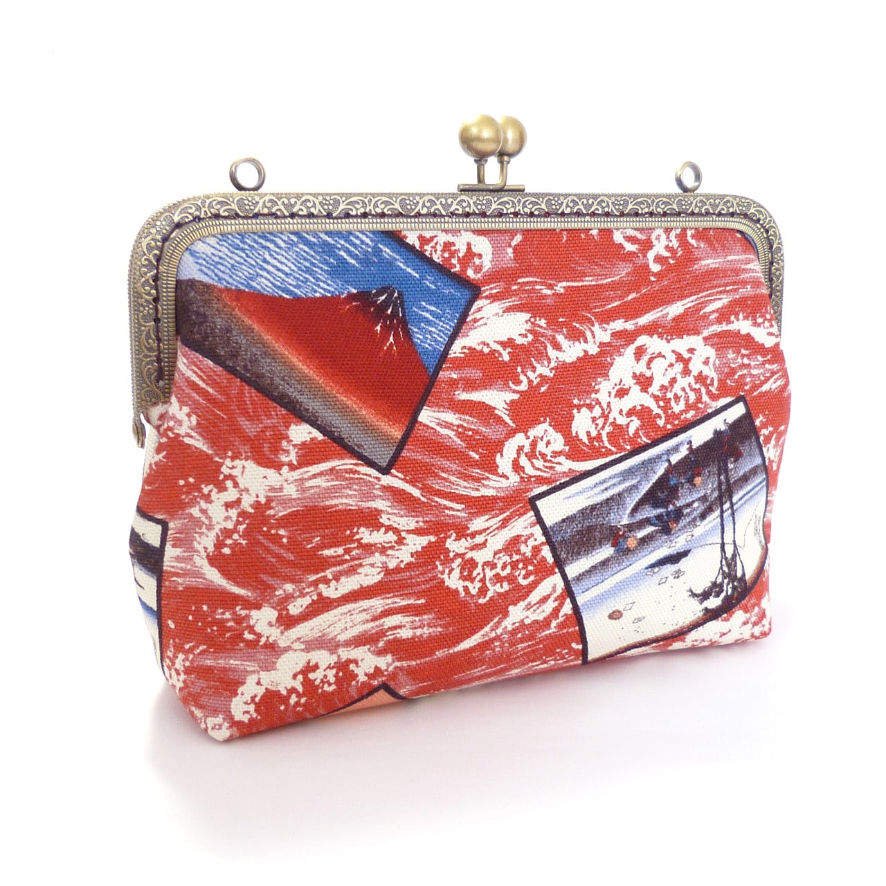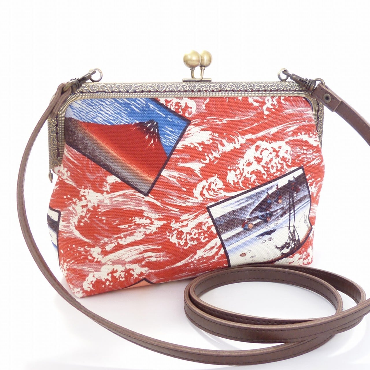 [SALE] がま口 ショルダーバッグ 浮世絵 赤 和柄 小さめなバッグ G358 SALE