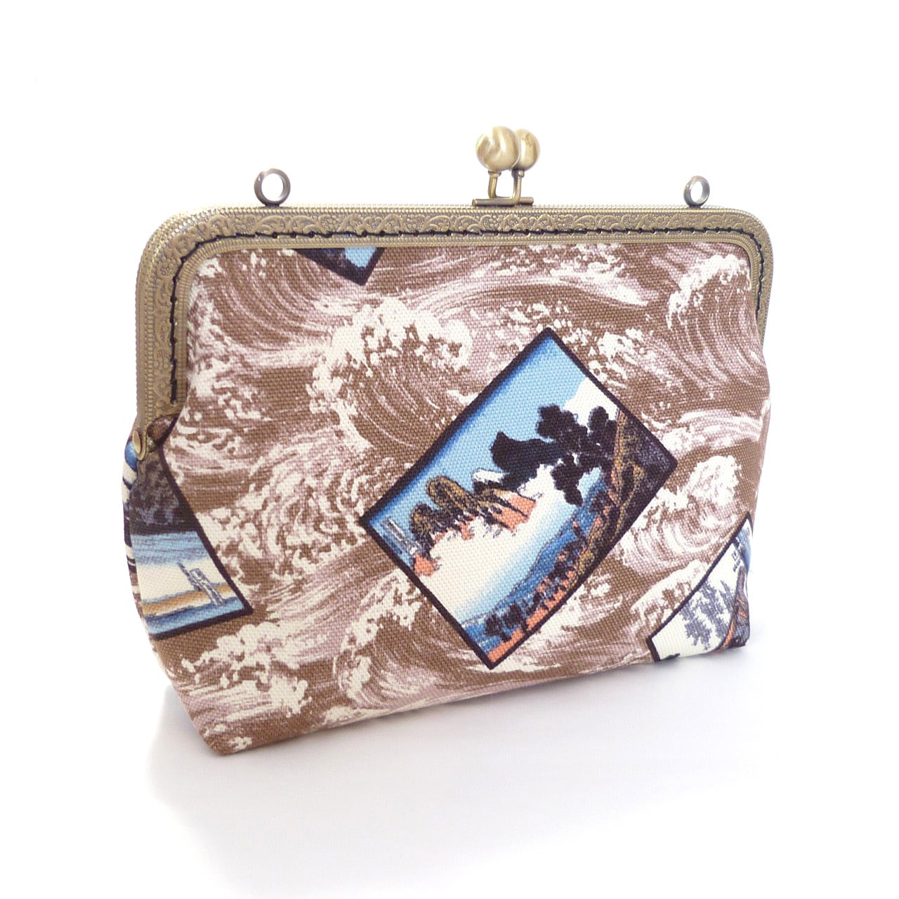[SALE] がま口 ショルダーバッグ 浮世絵 茶 和柄 小さめなバッグ G359 SALE