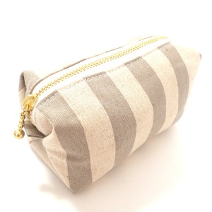 キャラメルポーチ (小) グレー ストライプ柄 化粧ポーチ 小さめ C025