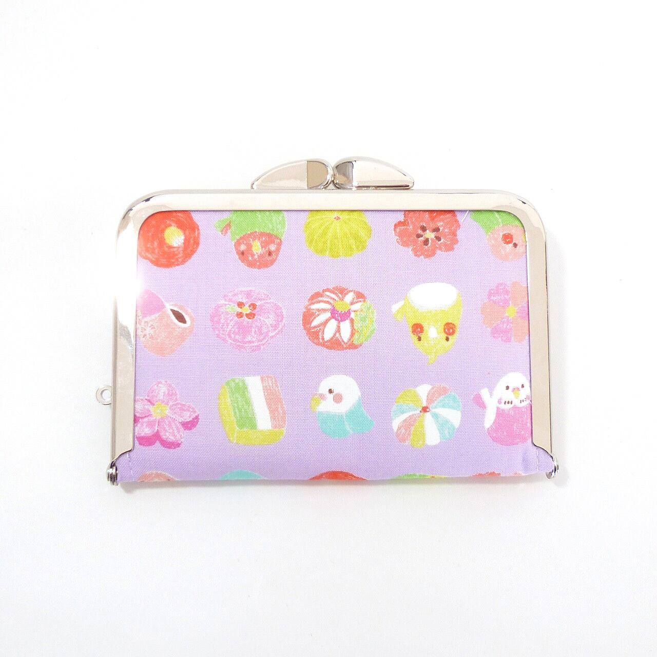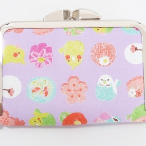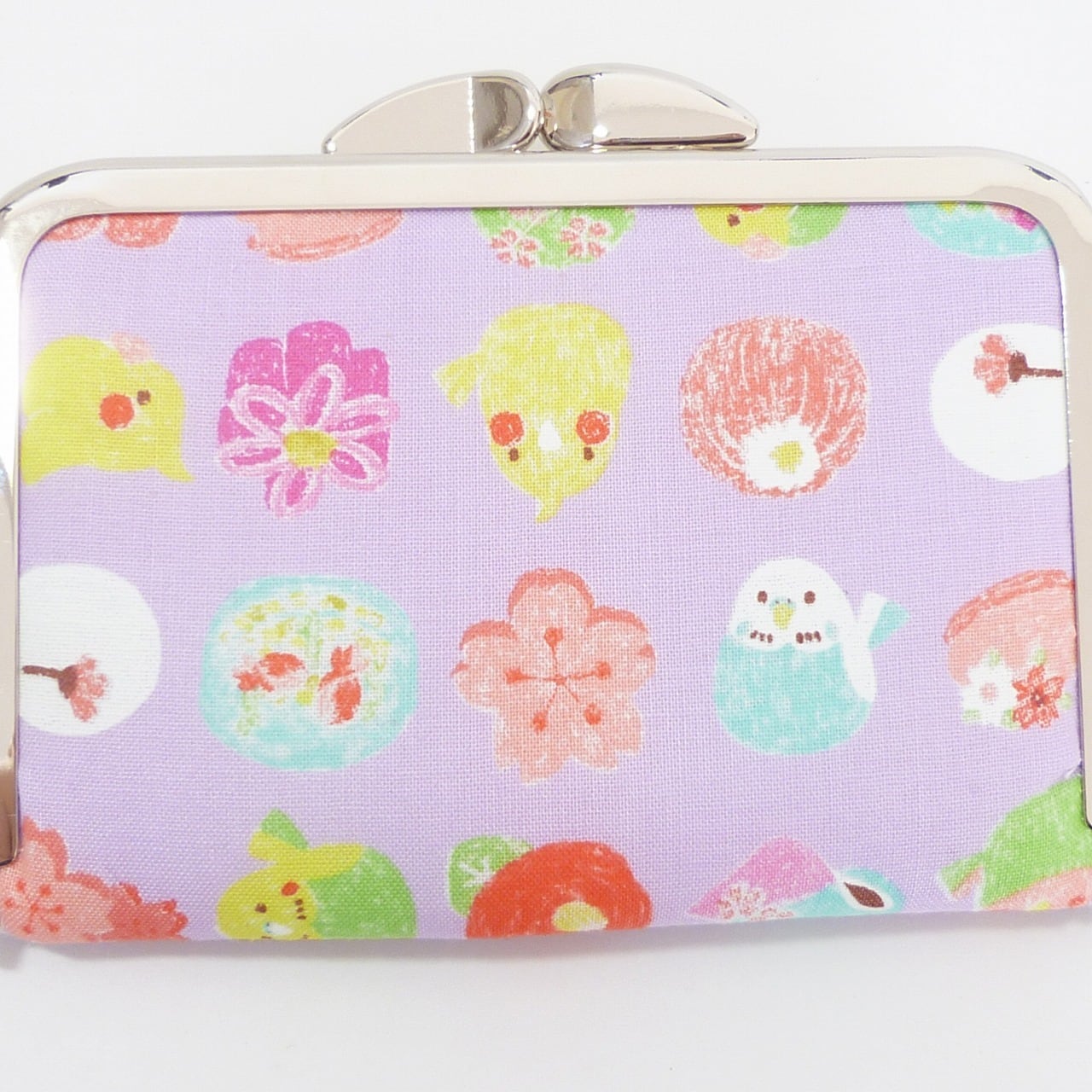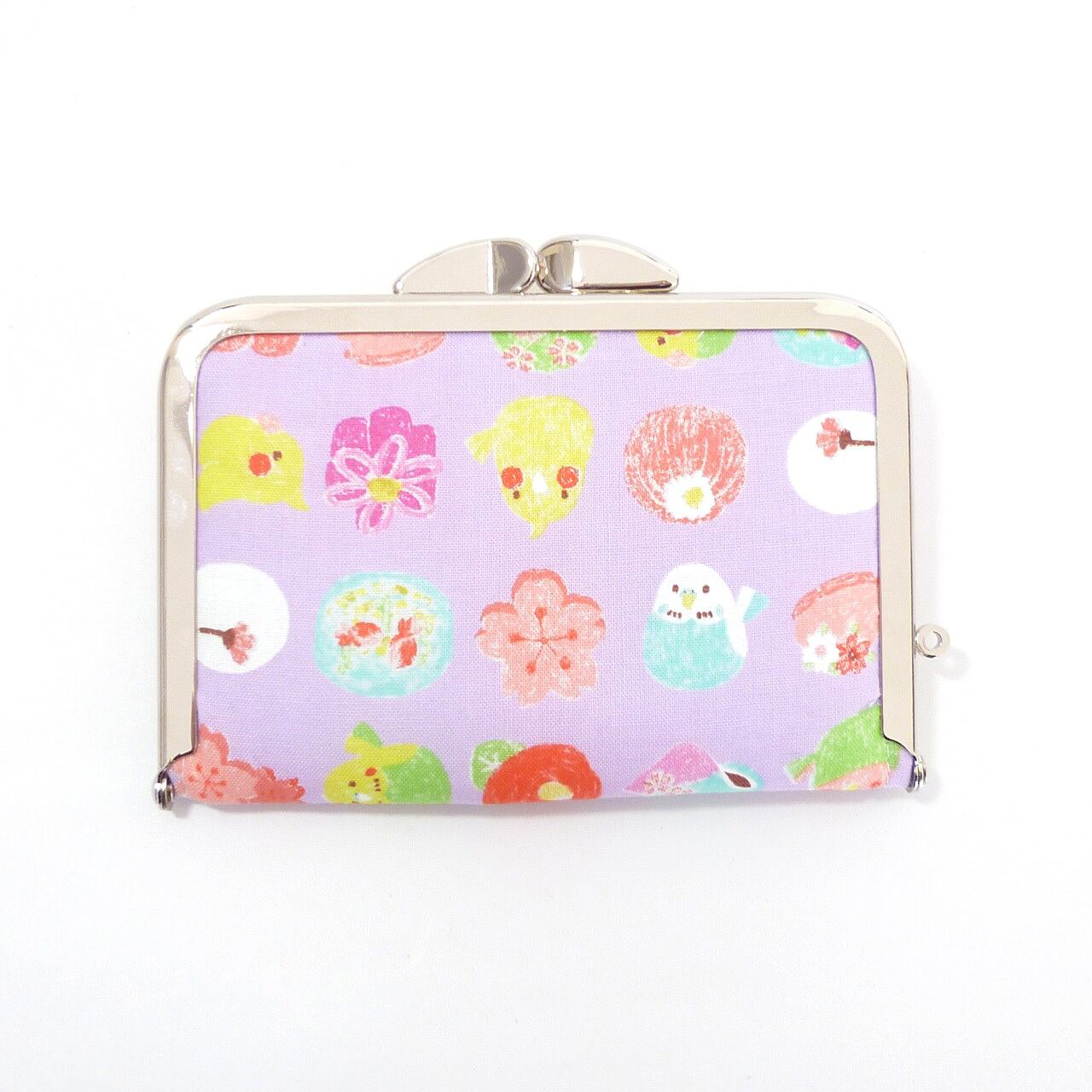 [SALE] がま口 カードケース 和菓子とインコ 鳥柄 紫 コインケース G531 SALE