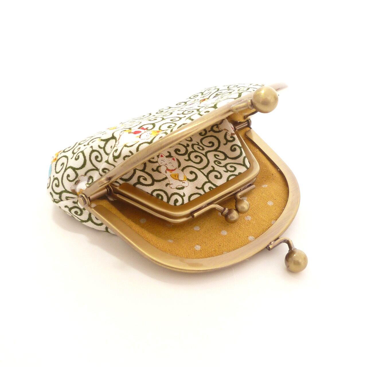 小さいサイズ 親子がま口 財布 招き猫柄 唐草模様 ネコ G997