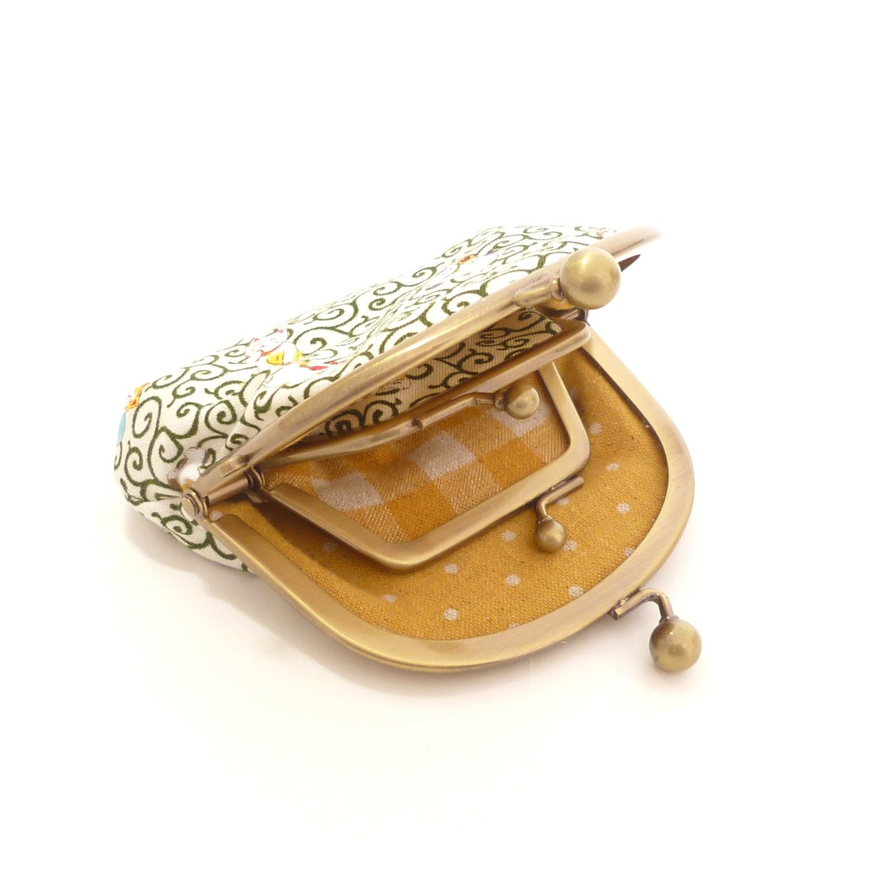 内側は明るい黄色のドット柄&チェック柄です。