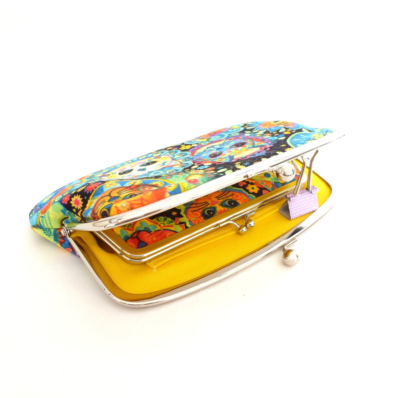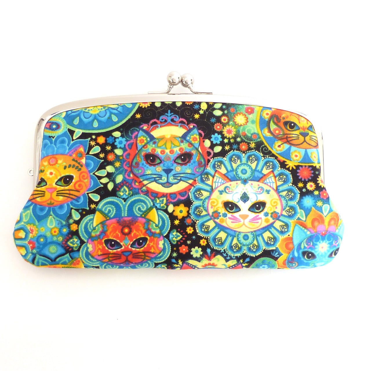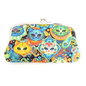 親子がま口 長財布 メキシコの伝統柄風 猫柄 ネコ G723