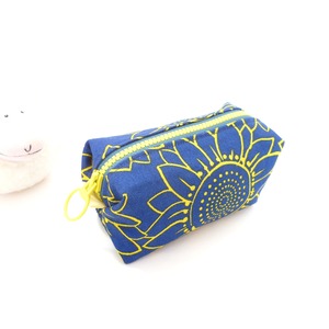 キャラメルポーチ (小) 大きいヒマワリ柄 ブルー 化粧ポーチ 小さめ C046