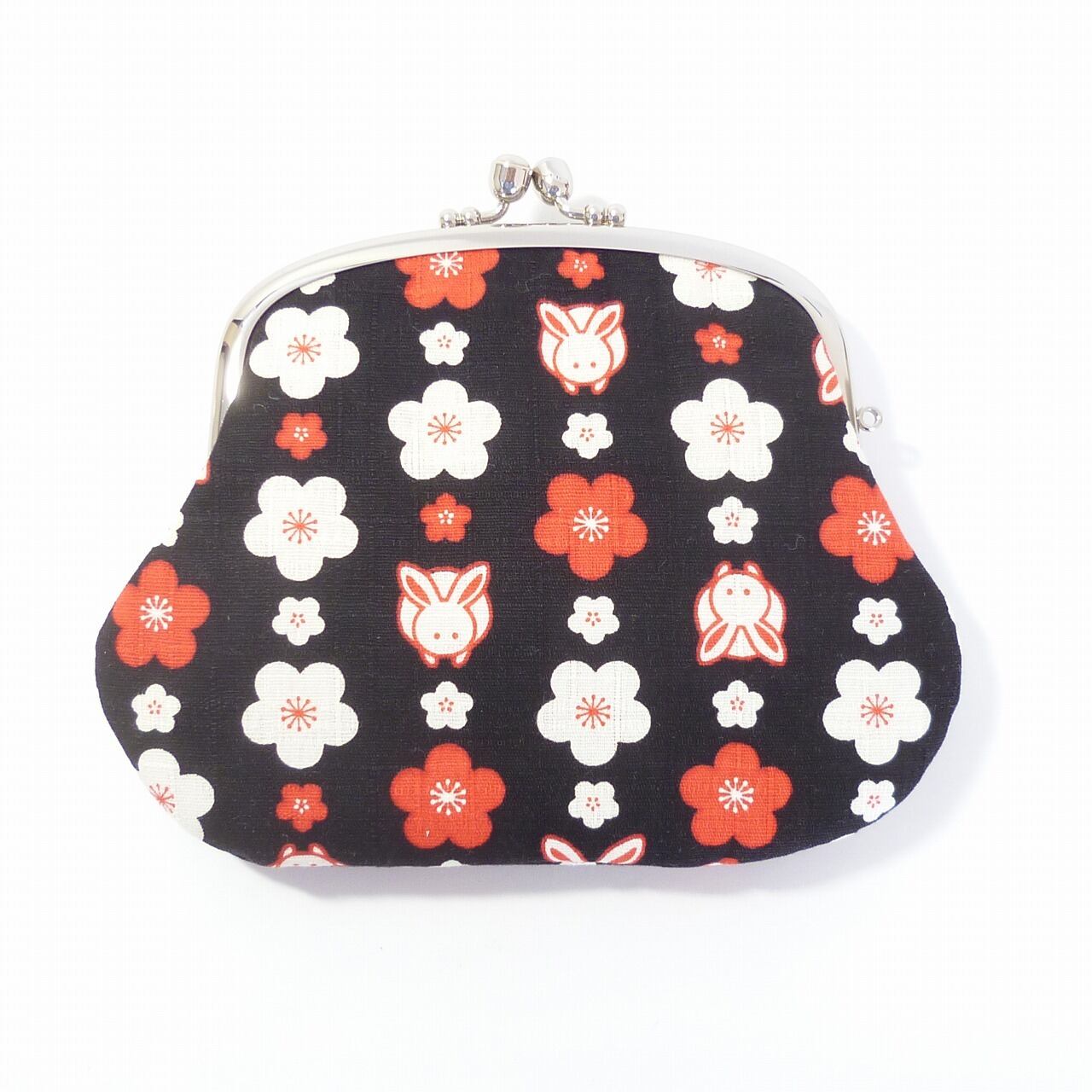 うさぎさんの顔と梅が綺麗に並んだ可愛いがま口です。