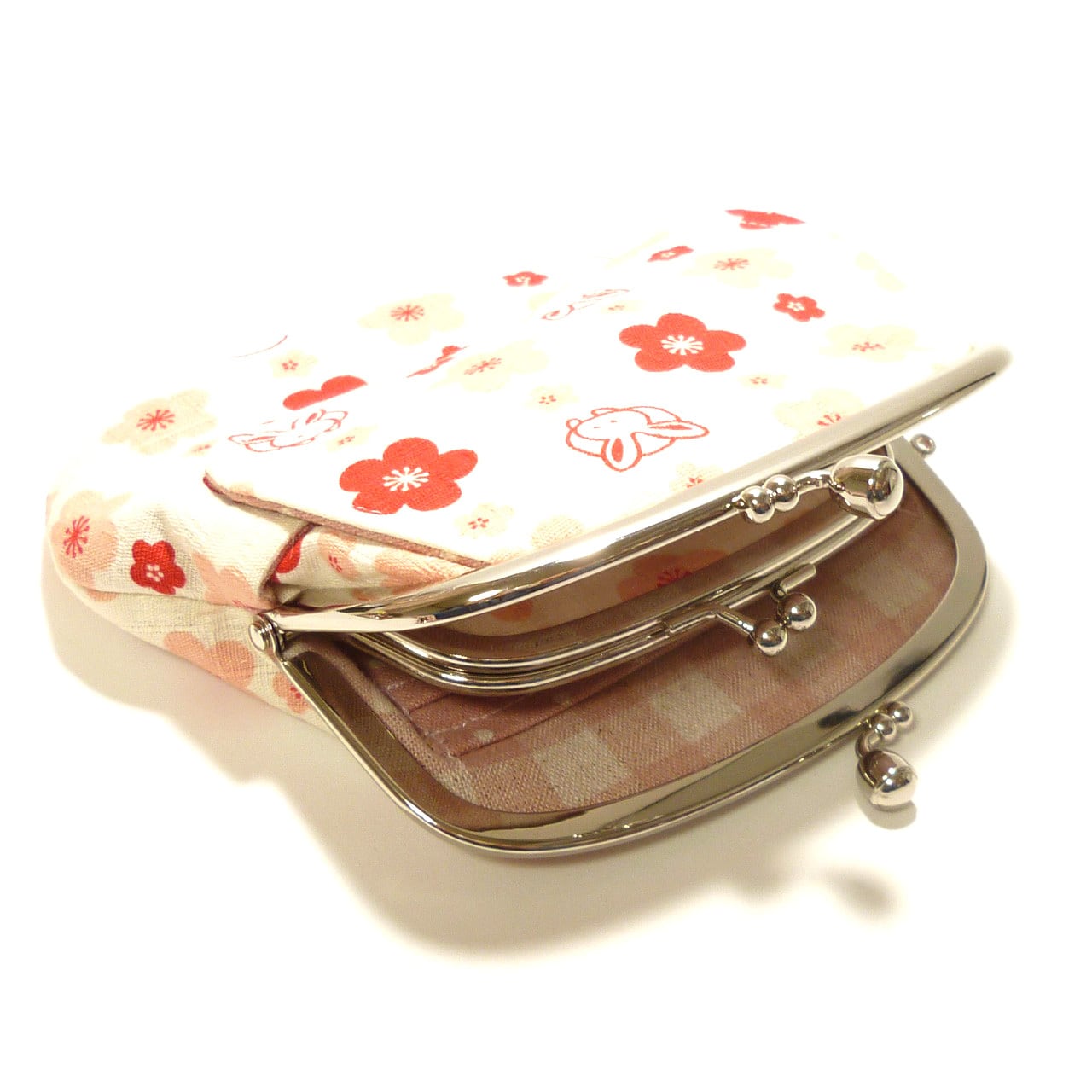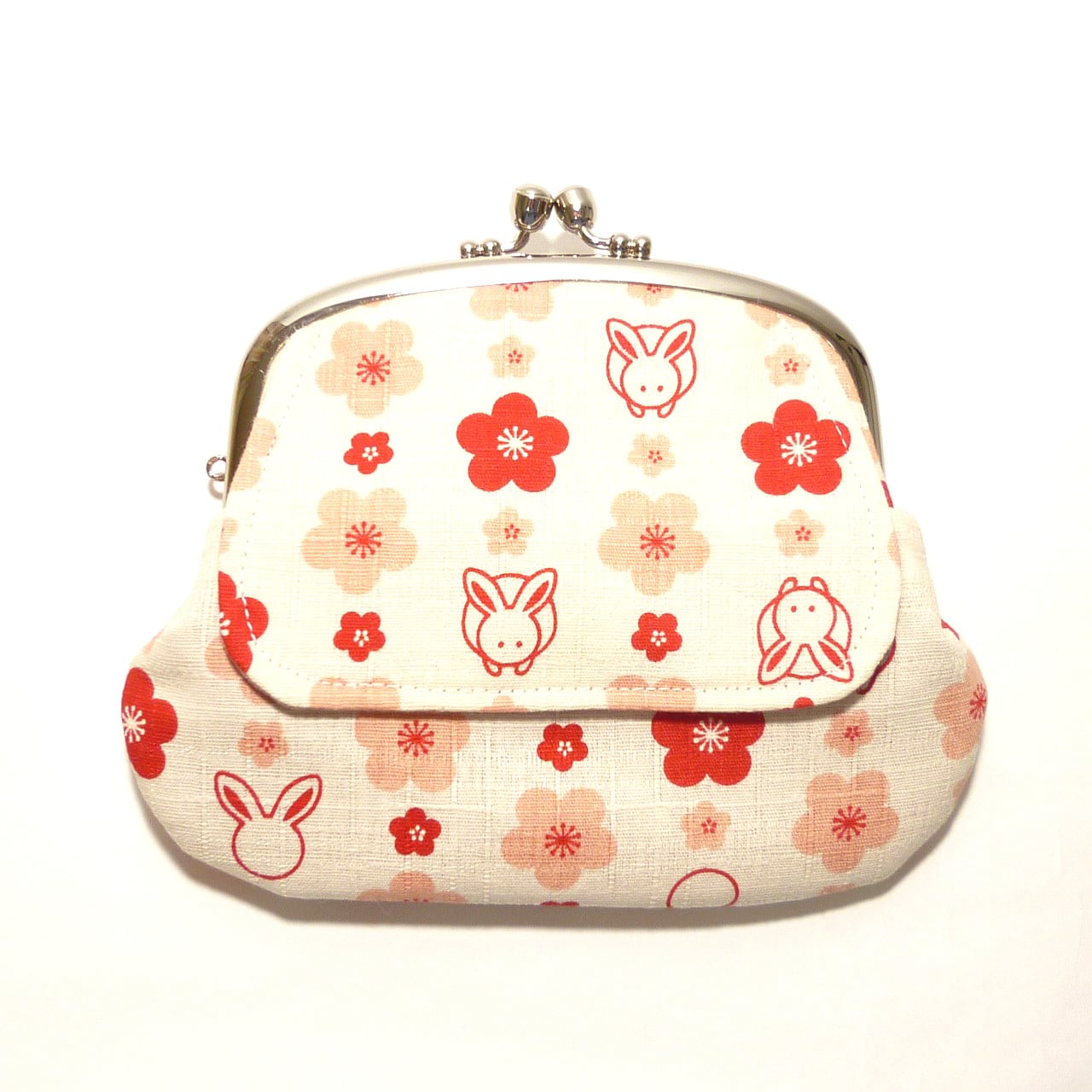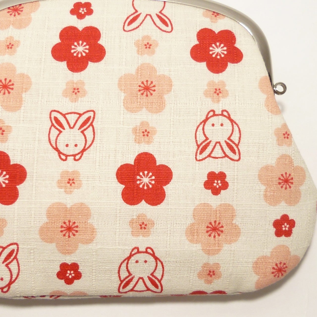 うさぎさんの顔と梅が綺麗に並んだ可愛いがま口です。