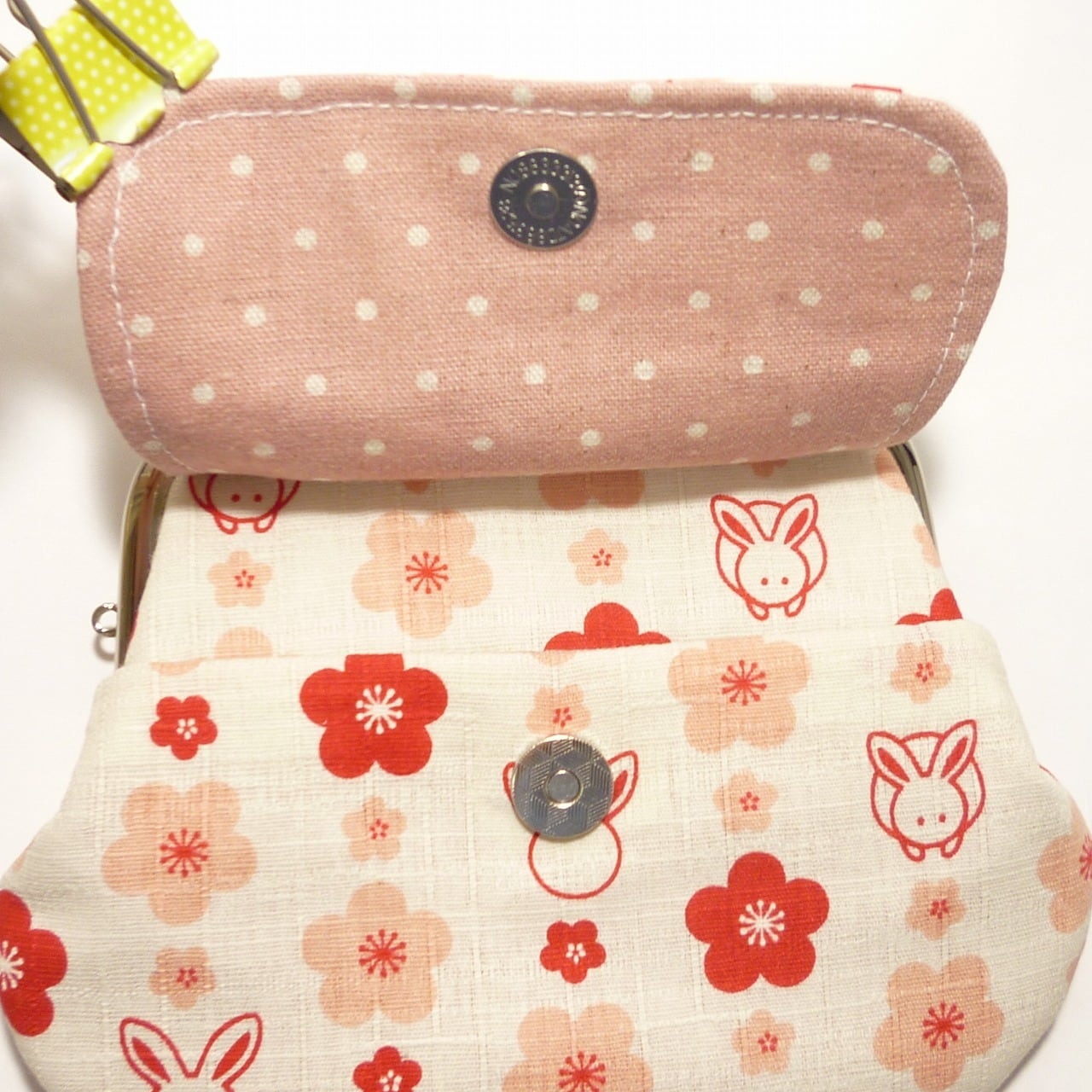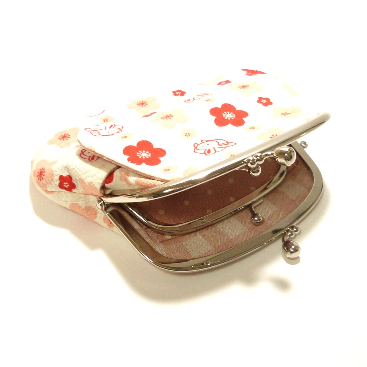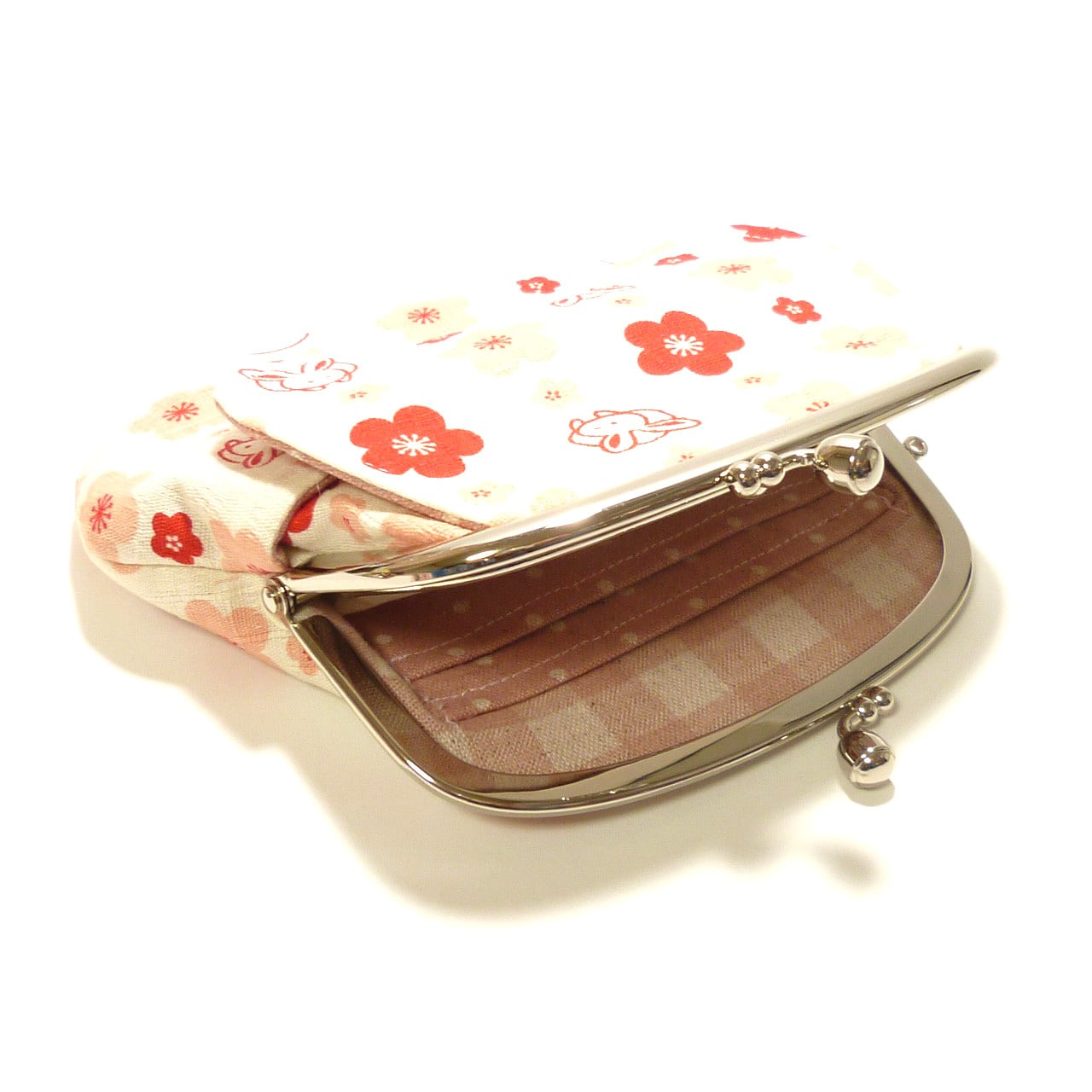 うさぎさんの顔と梅が綺麗に並んだ可愛いがま口です。
