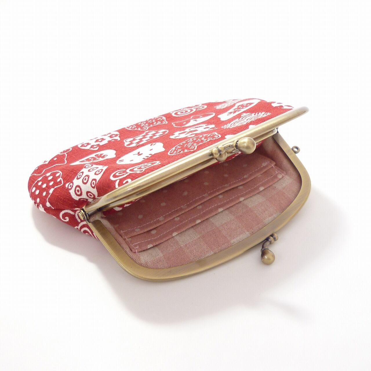 親がまの内側はピンクのチェック柄、子がまのうち側はドット柄の生地を使用しています。