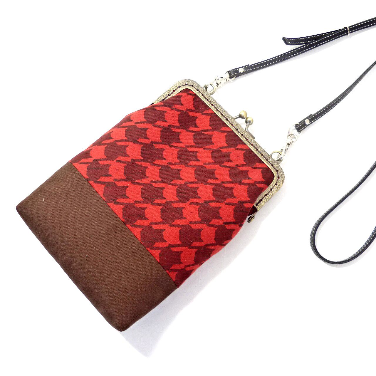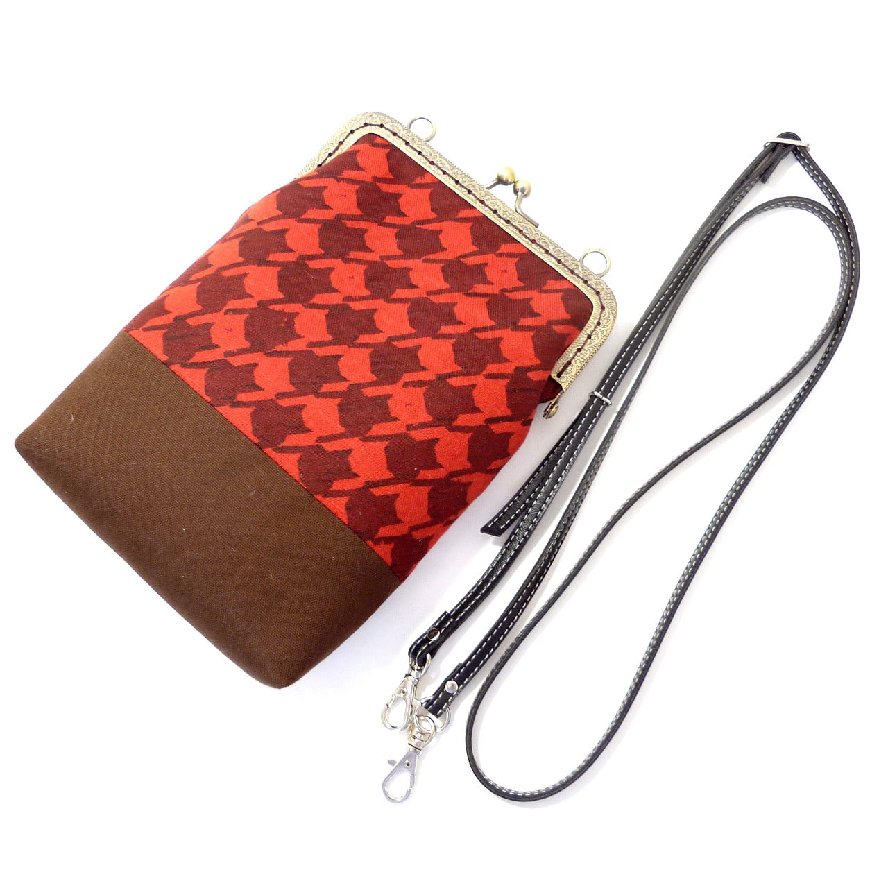 がま口 スマホショルダーバッグ 千鳥猫柄 赤 ポシェット G798
