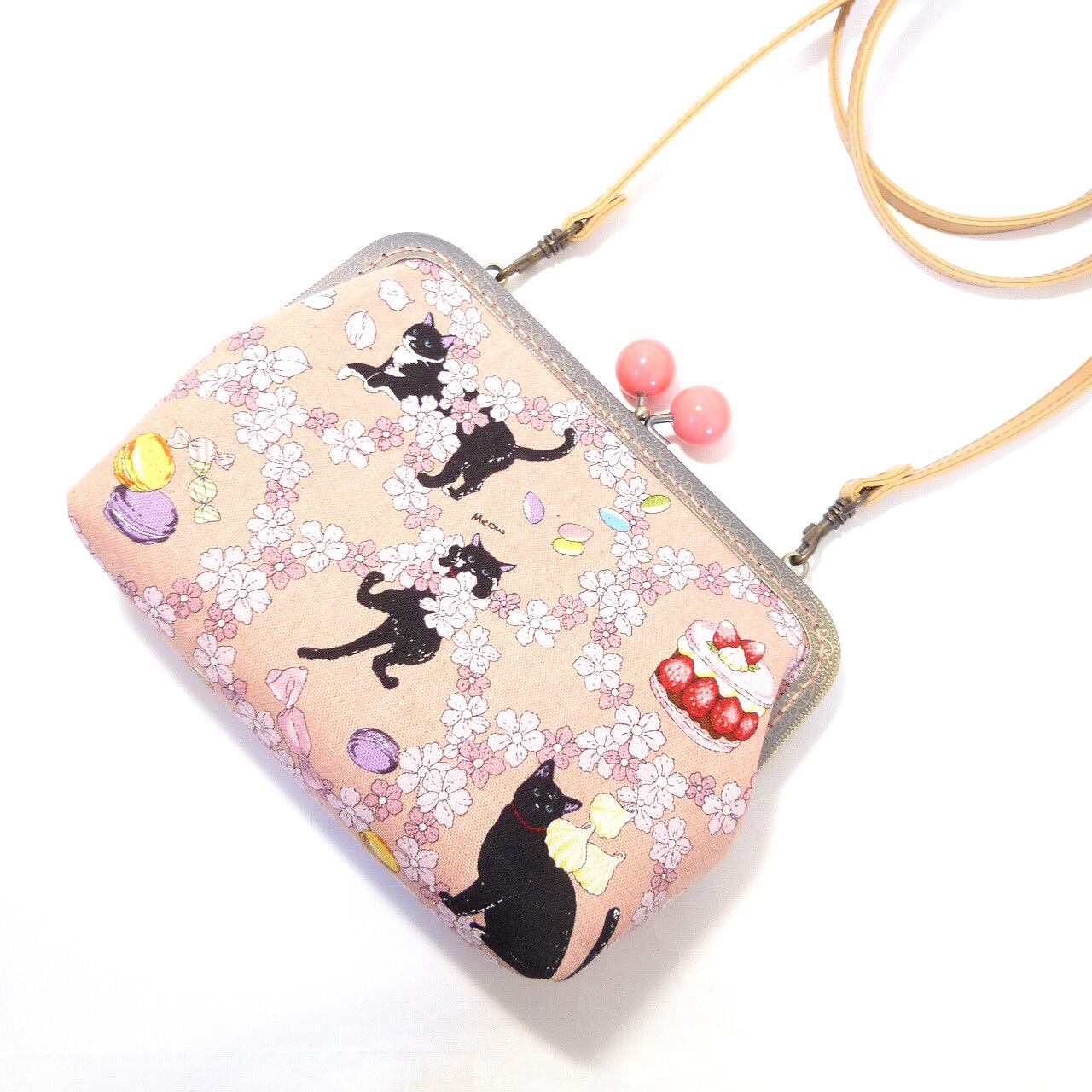 あめ玉 がま口 ショルダーバッグ 黒猫さんとスイーツ 小さめなバッグ G819