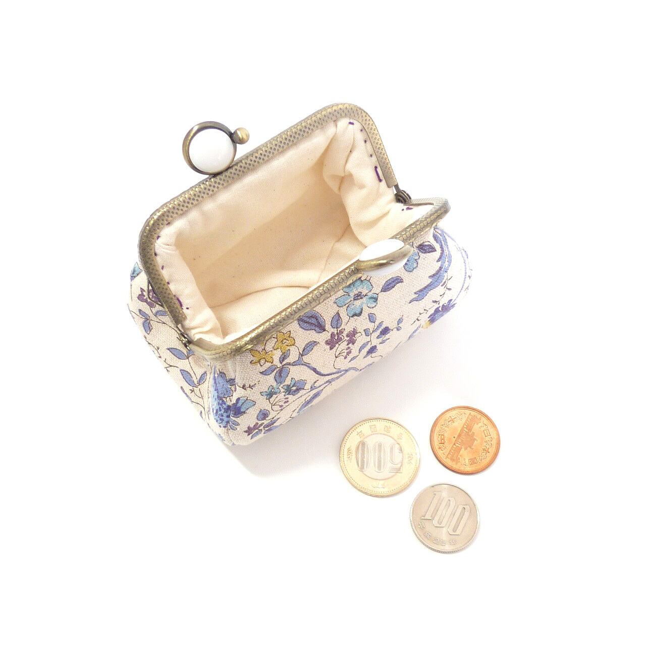 華やかな花柄のがま口小銭入れです。柔らかな雰囲気の柄です。