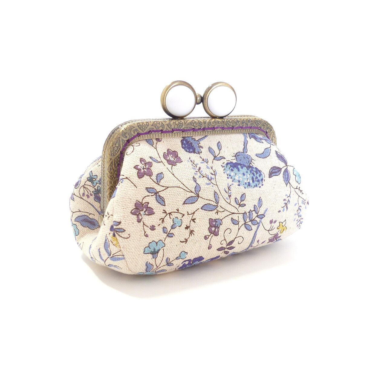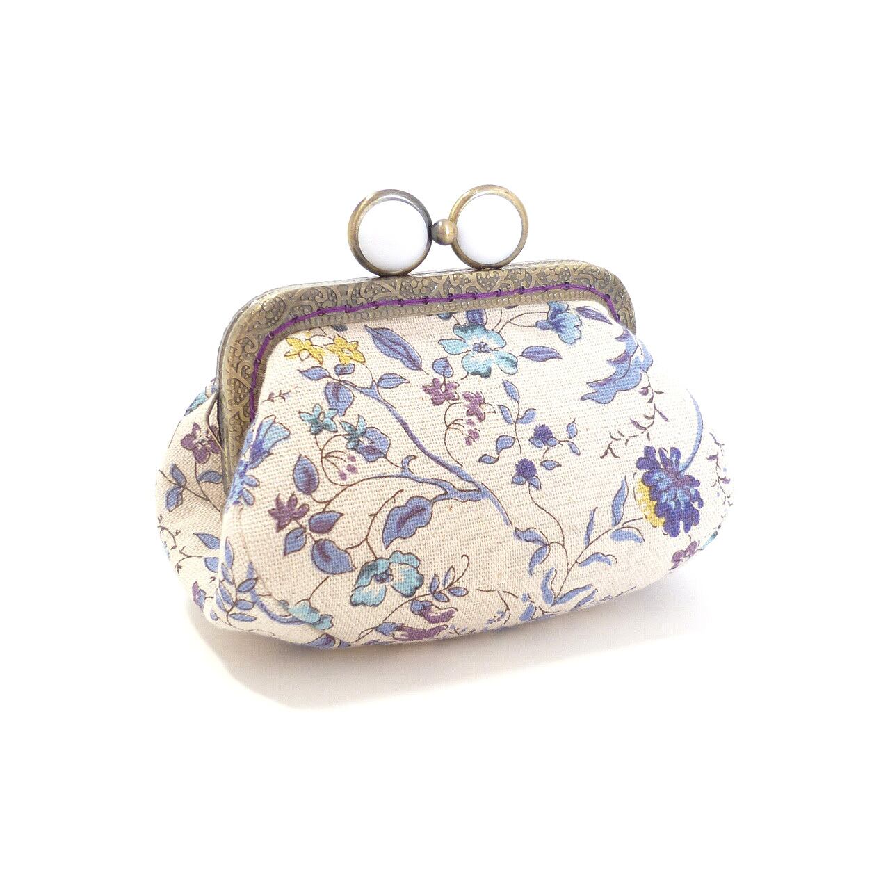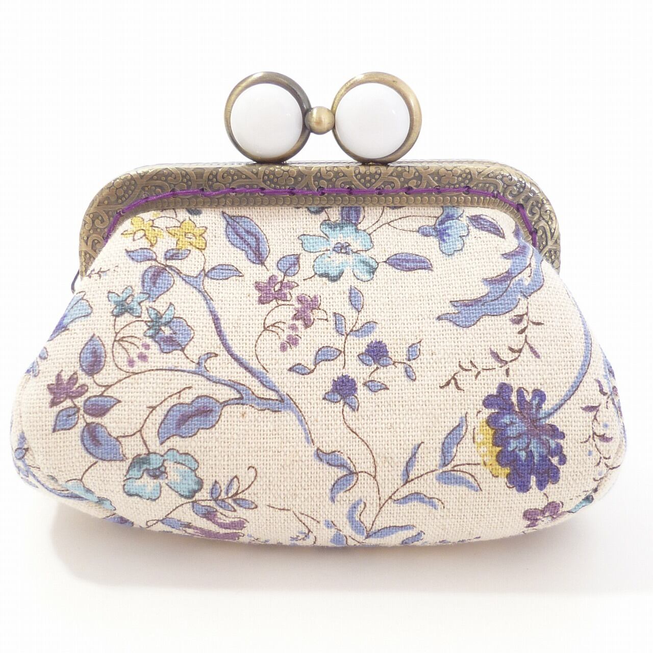 がま口小銭入れ 花柄 パープル系 コインケース G867