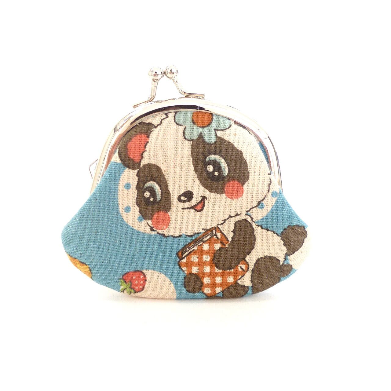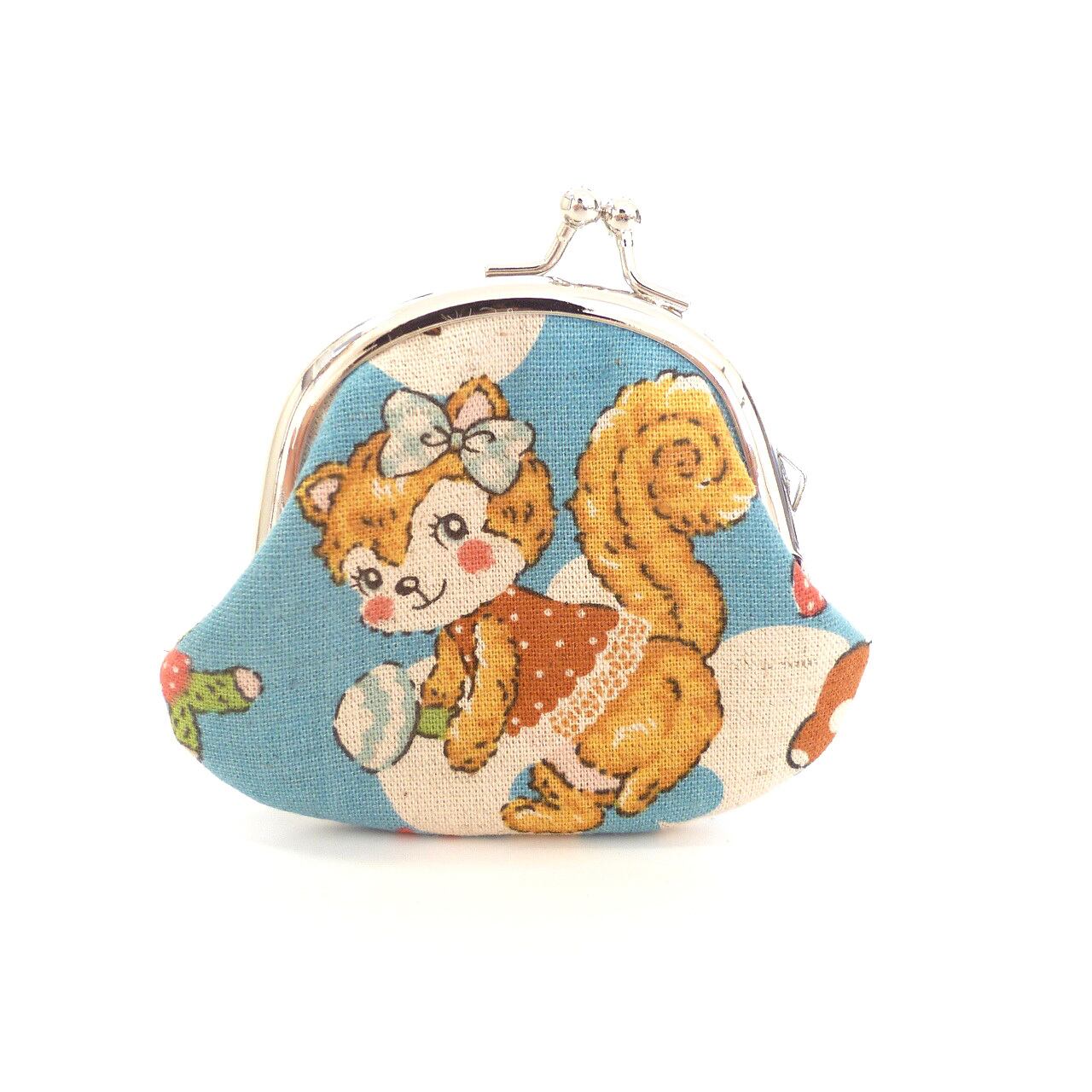 ミニ がま口小銭入れ レトロアニマル柄 ブルー コインケース G893