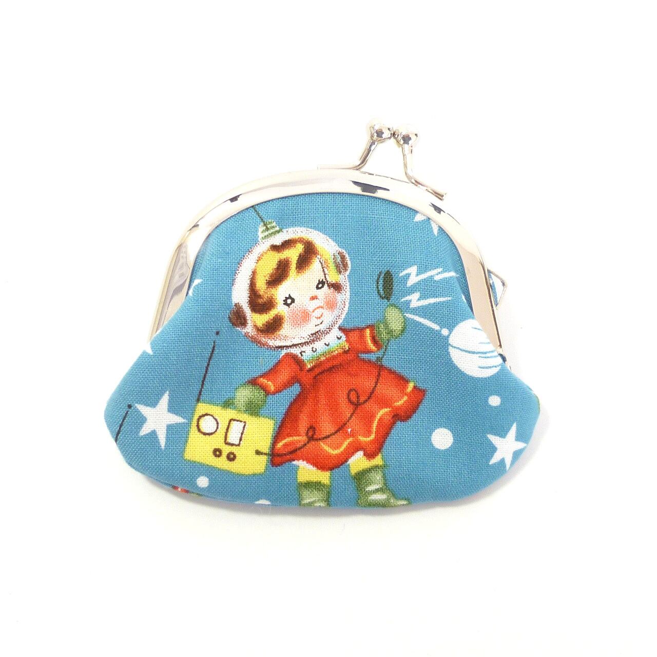 ミニ がま口小銭入れ スペースキッズ 宇宙 ブルー コインケース G932