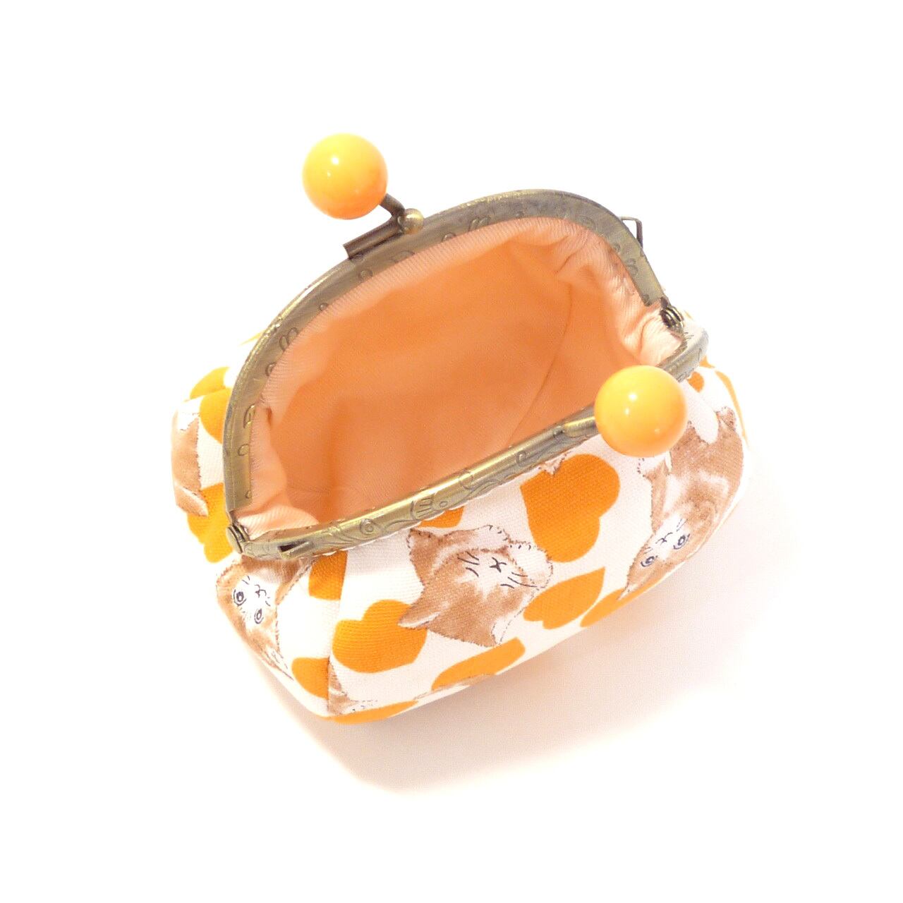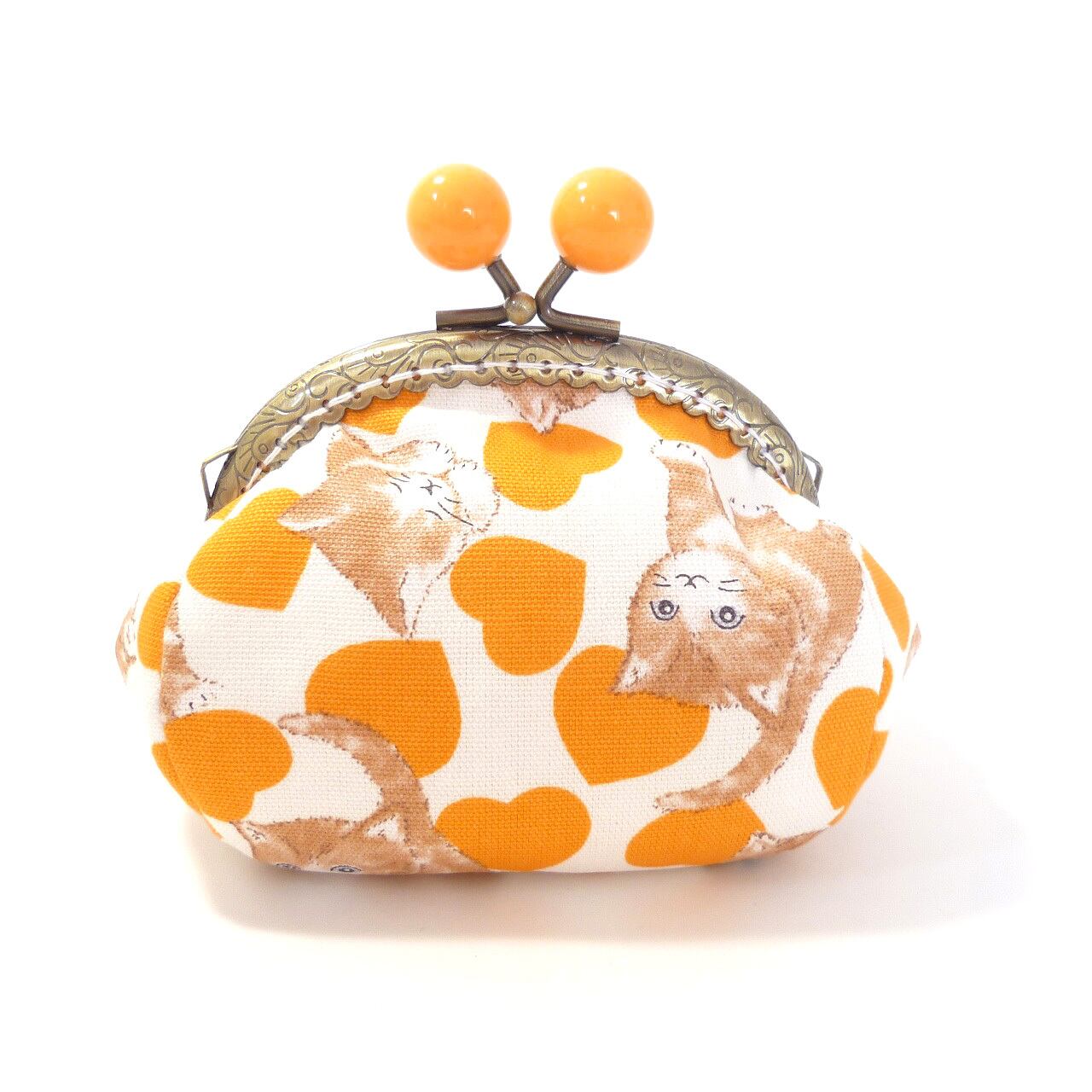 オレンジ色のハートに囲まれた可愛い子ネコちゃんのがま口です!