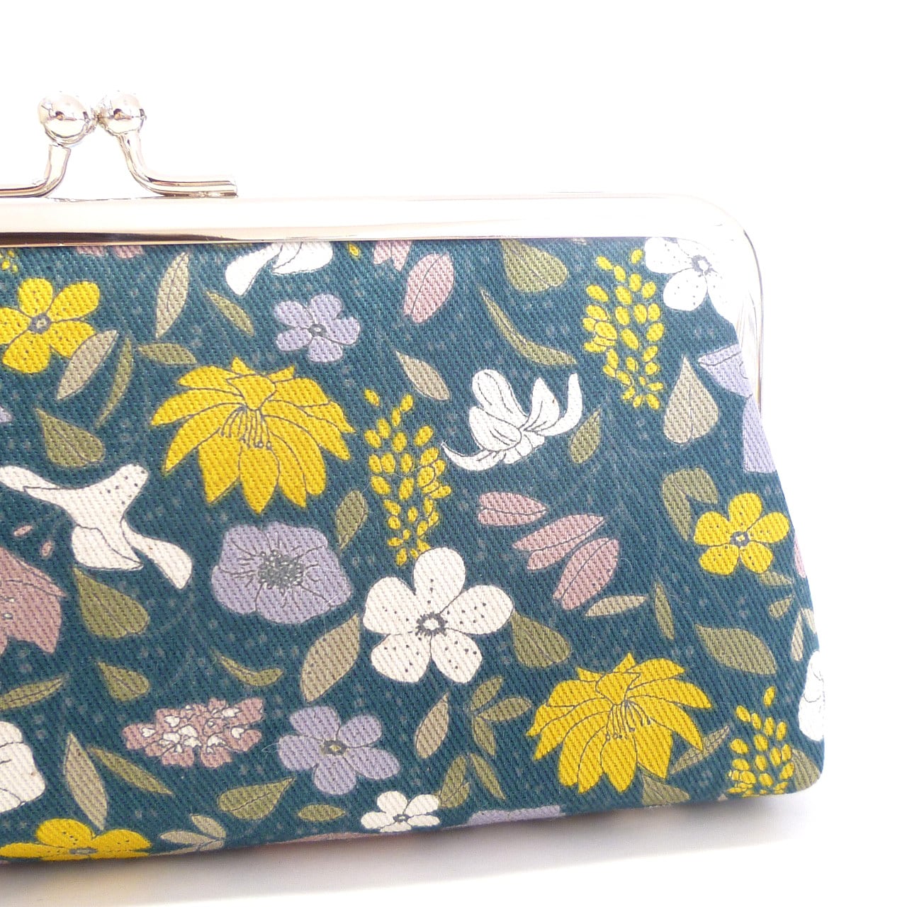 がま口 ペンケース 花柄 深緑 グリーン 眼鏡ケース G370