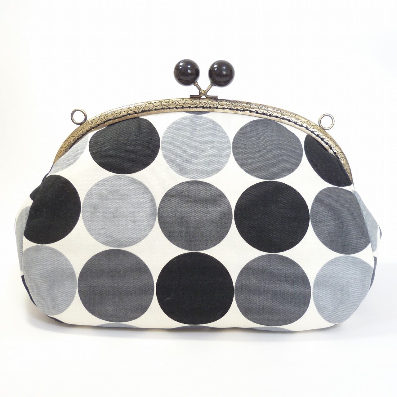 10/18追加★ あめ玉 がま口ショルダーバッグ ドット柄 黒系 ポシェット G657 newitem