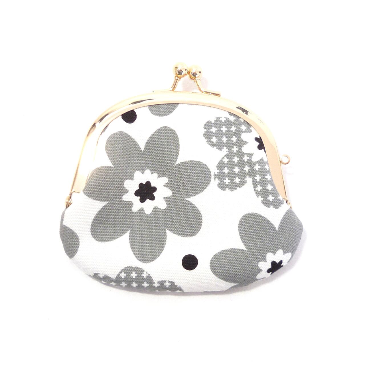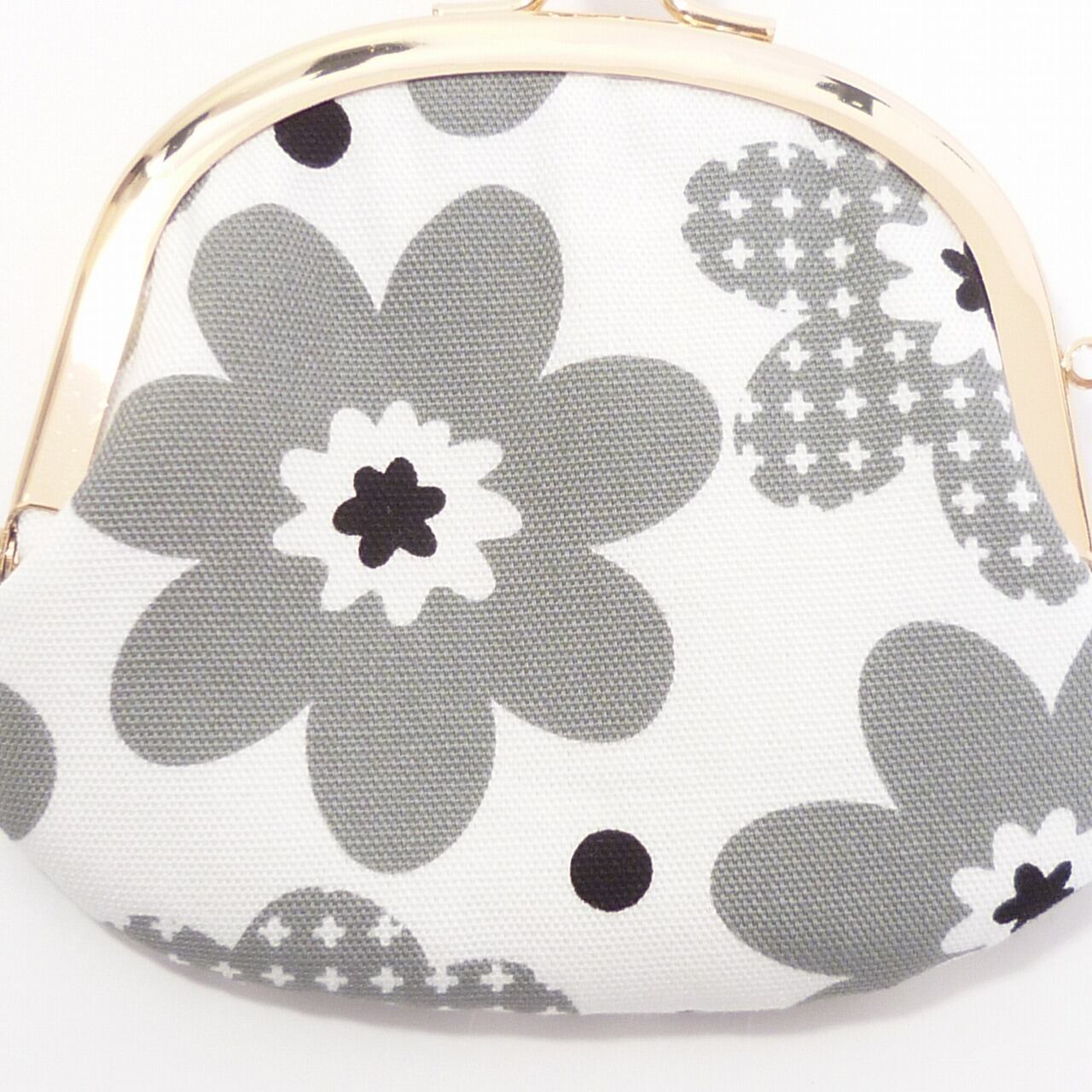がま口小銭入れ 花柄 グレー お洒落 コインケース G092 3.3寸