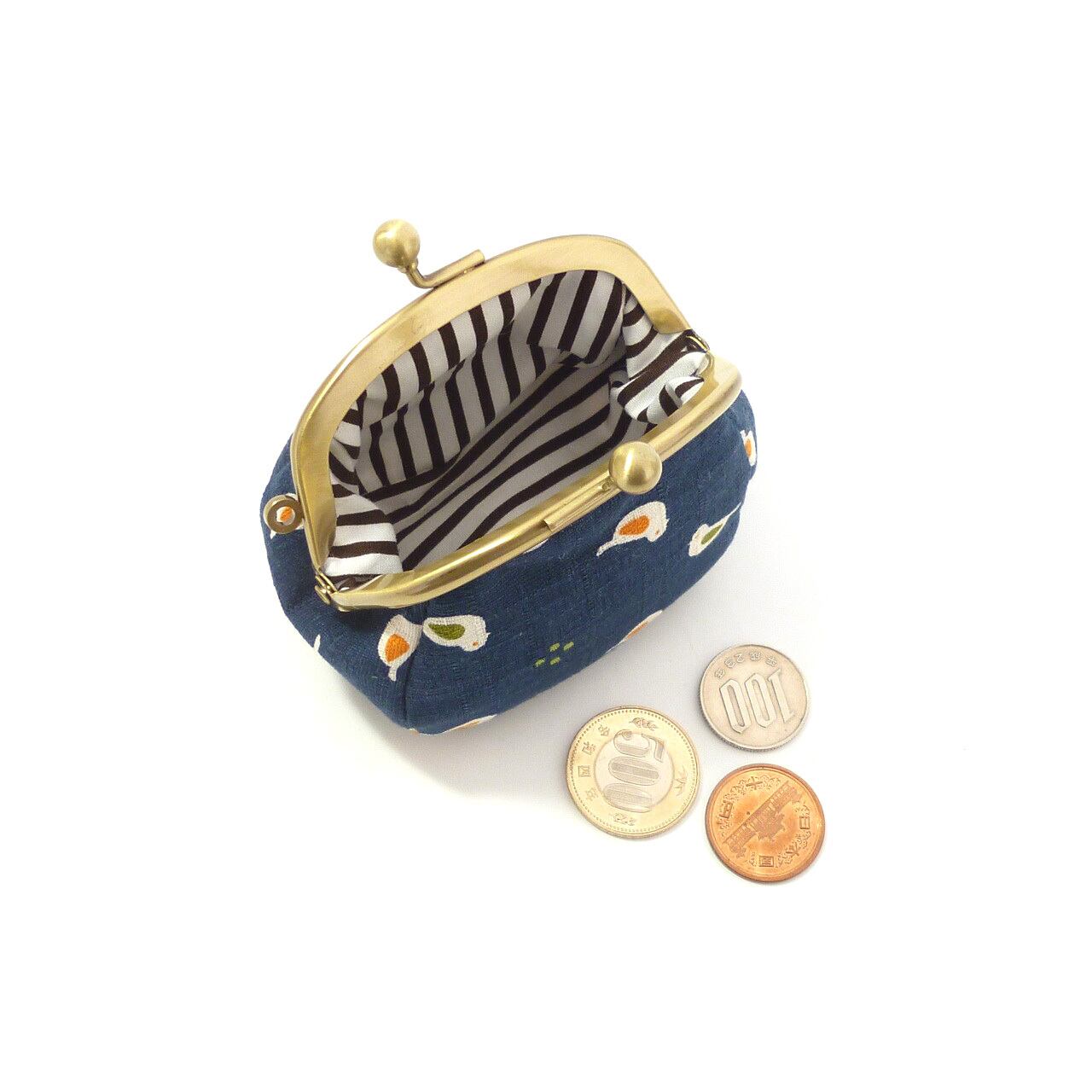 がま口小銭入れ 小鳥 和柄 紺 コインケース G141