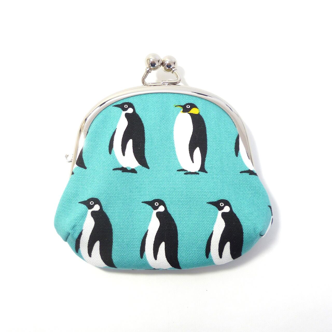 小さいサイズ 親子がま口 財布 ペンギン柄 グリーン G154