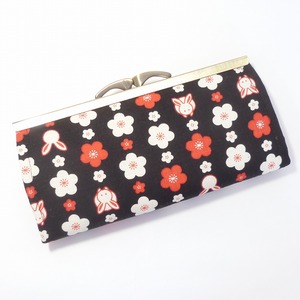 がま口長財布 スリムタイプ うさぎと梅 ウサギ 花柄 黒 G198