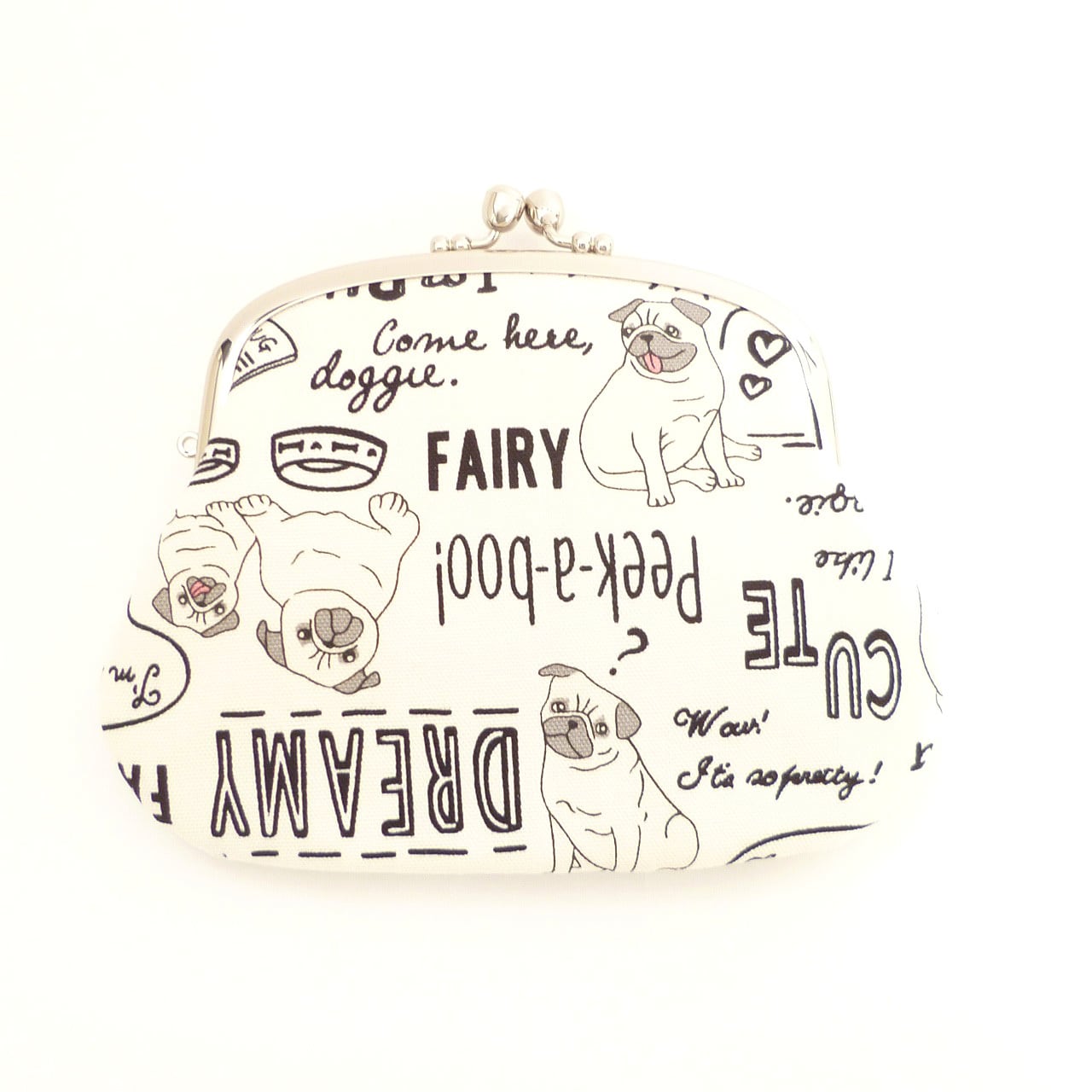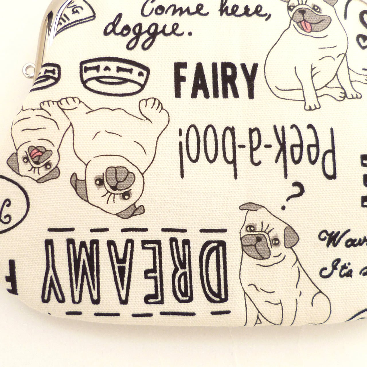 親子がま口 財布 おちゃめなパグ柄 犬柄 白 G702