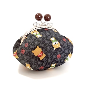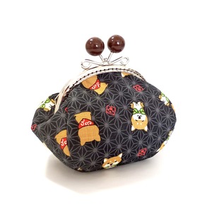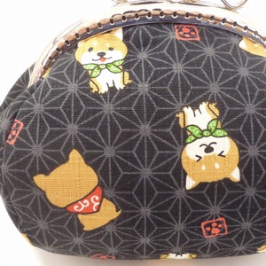 あめ玉のがま口ポーチ 柴犬さん しばわんこ 黒 犬柄 G158