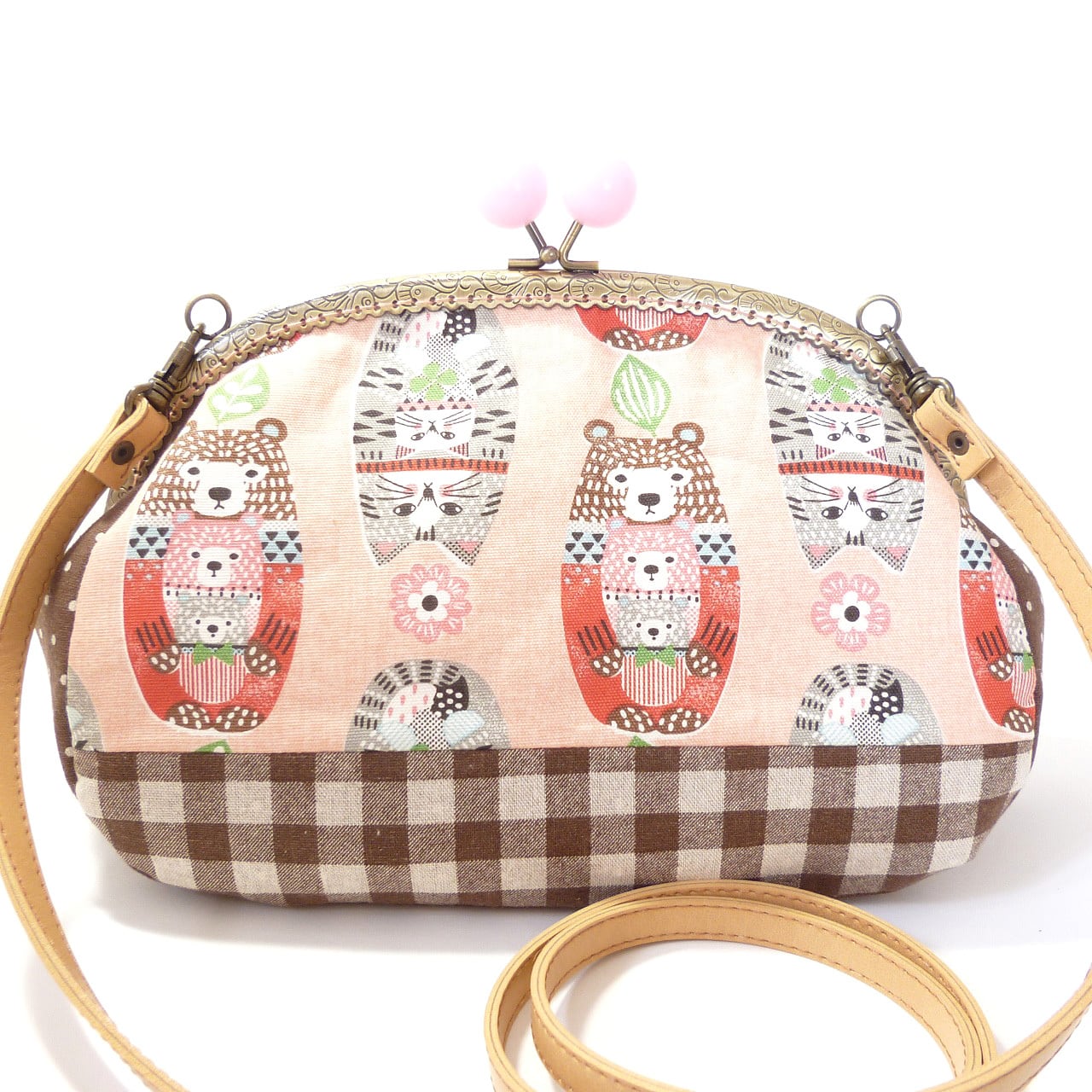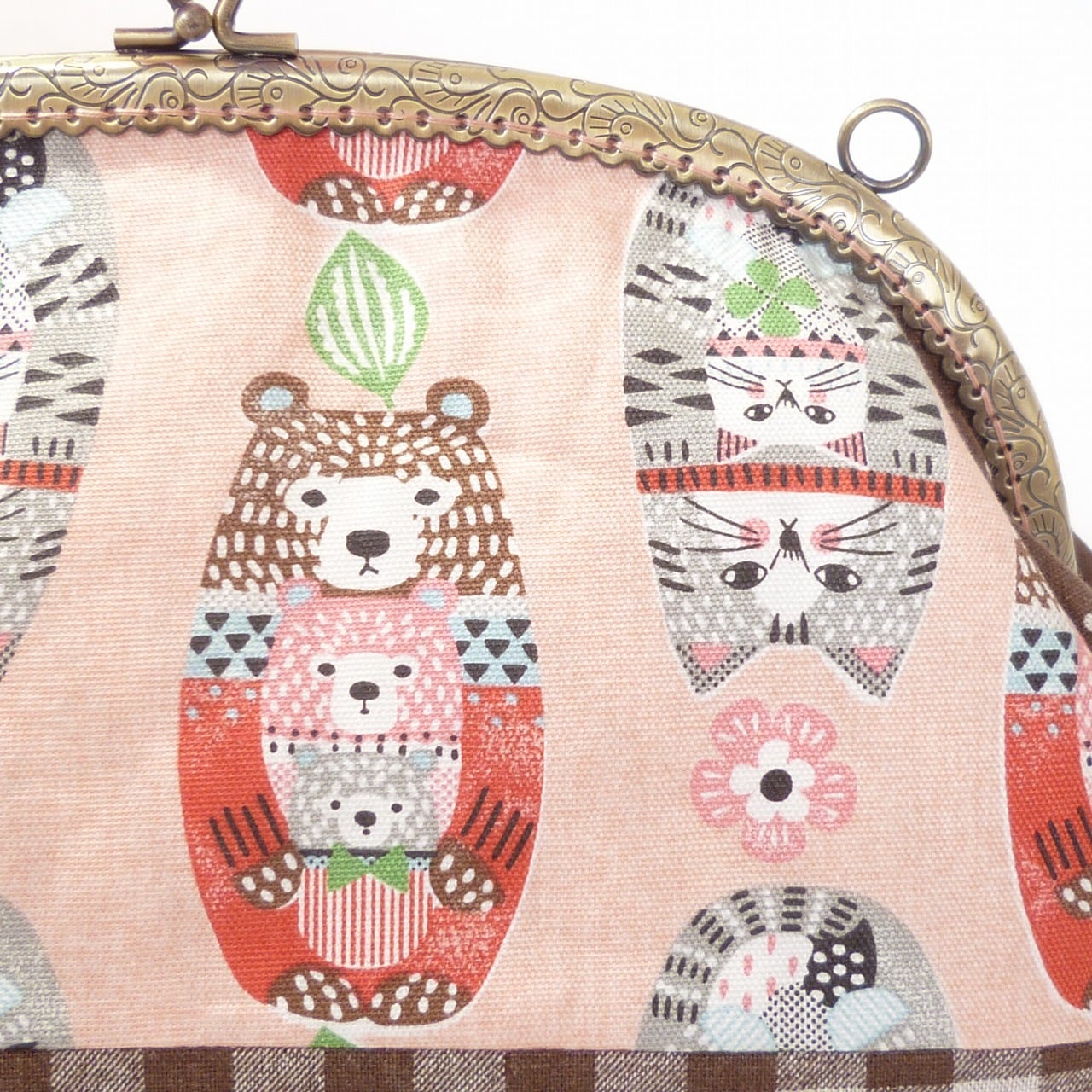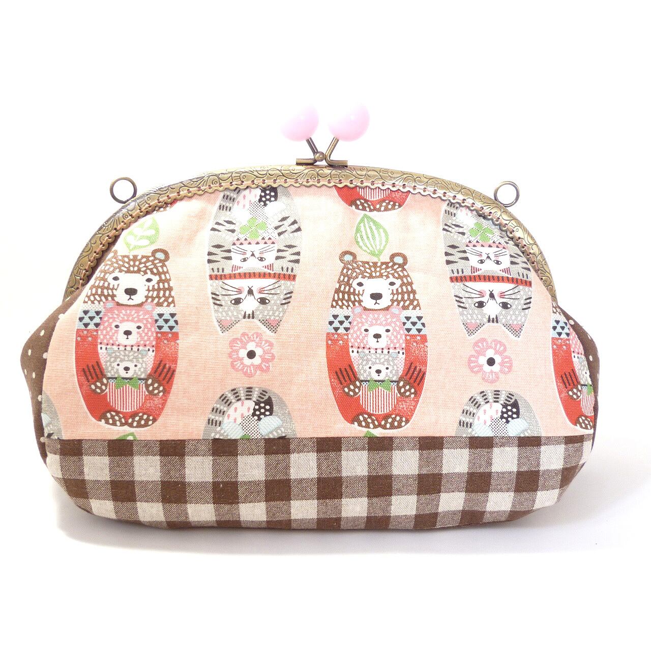 猫とクマの親子柄がなんとも可愛いがま口バッグです。