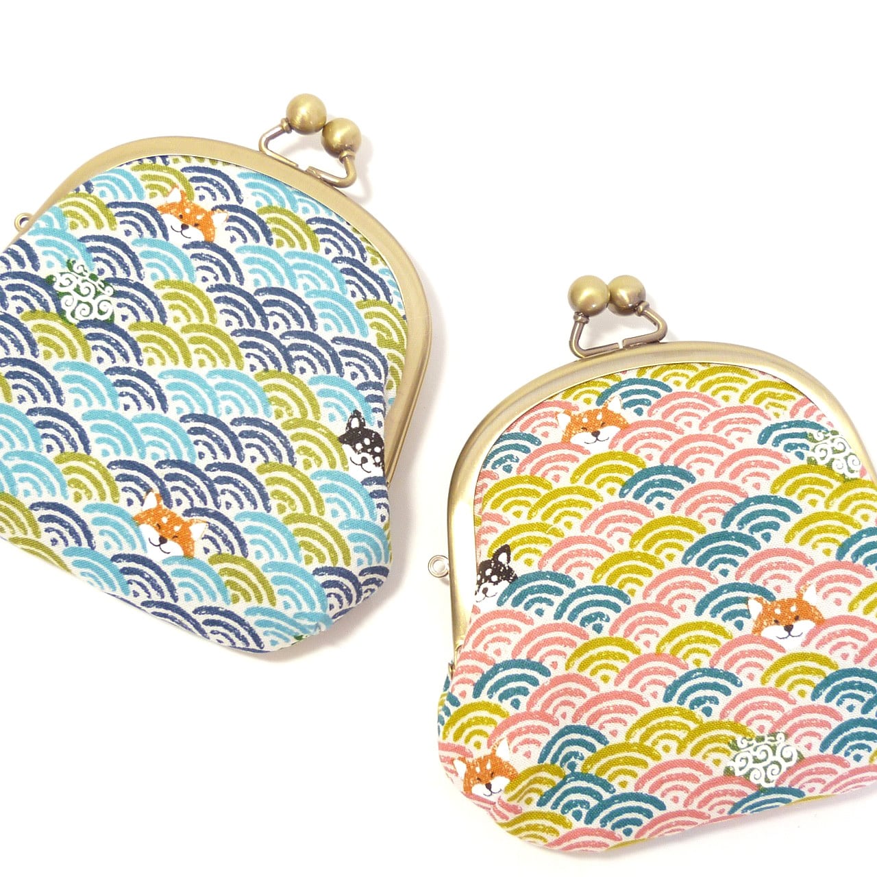 和柄に溶け込む柴いぬさんの可愛いがま口です。