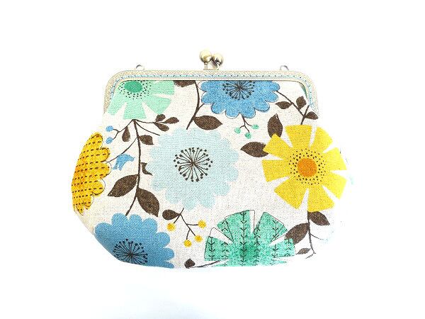 北欧風の花柄のがま口ショルダーバッグです。お出かけが楽しくなるようなバッグです。