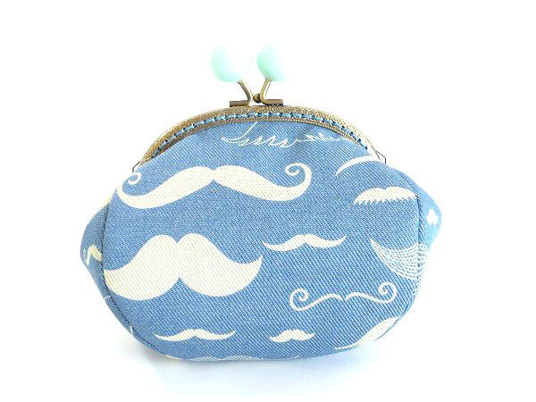 あめ玉のがま口ポーチ ひげ柄 ブルー G882